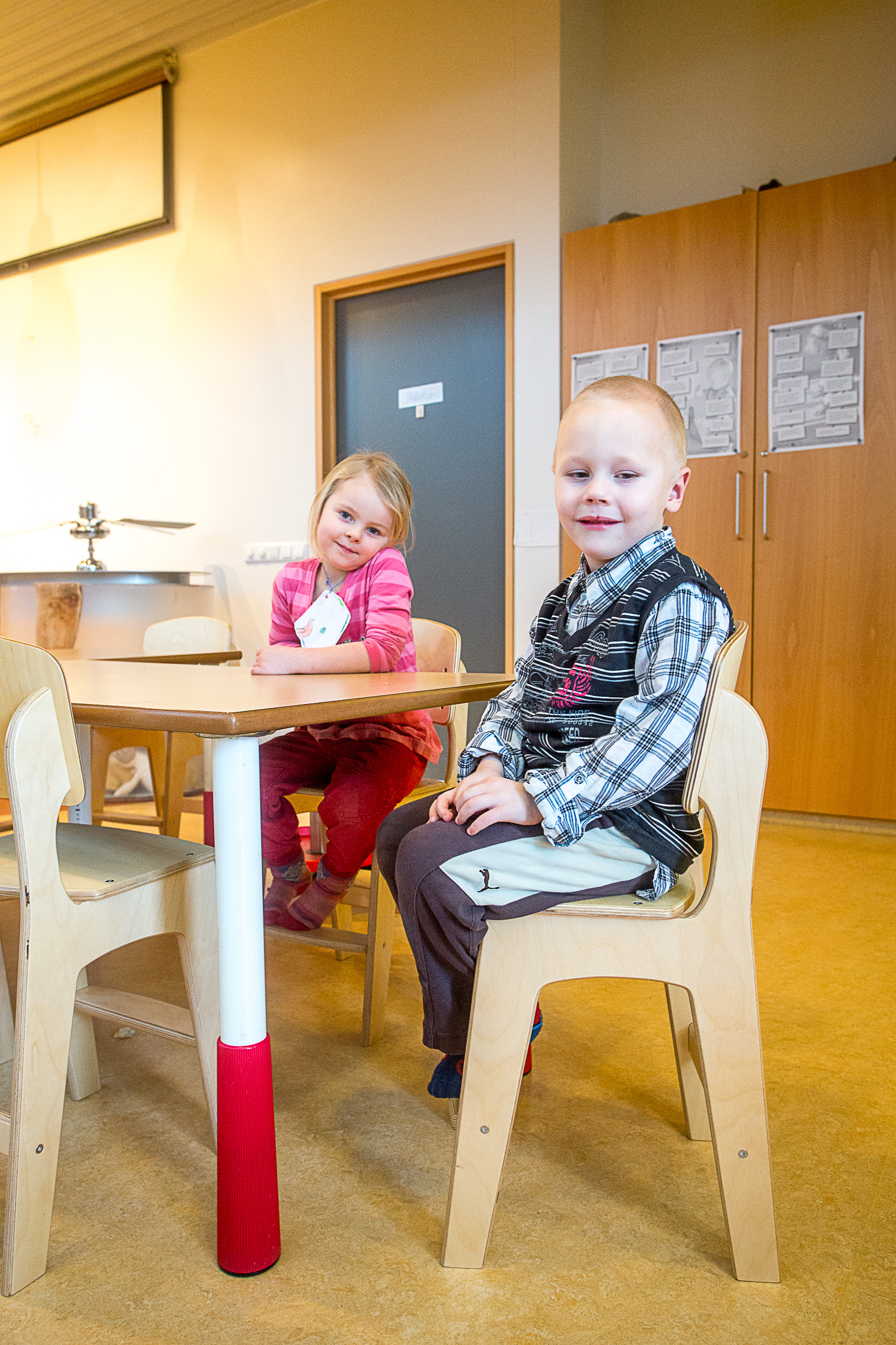 Stóllinn er smíðaður úr birki krossviði sem er hlýlegt efni sem börnin fella sig vel við að sögn leikskólastjóra. Setstaðan er hönnuð með þeirra þarfir í huga. Börnin mátuðu oft stólinn meðan hann var í þróun og gáfu sitt álit. „Þeim líður vel í stólunum þar sem þau sitja í sem bestri stöðu sem hæfir þeirra líkamsbyggingu,“ segir Kristlaug.